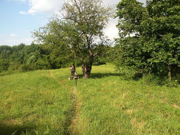 We came to VA Rt 632, a point She-Bear had told us would look like “Little House on the Prairie”. It was indeed a spectacular wide-open meadow. As far as you could see was green grass, mountains, and blue sky. We hiked to the top of a very steep hill which sliced through the center of the tall meadow grass.