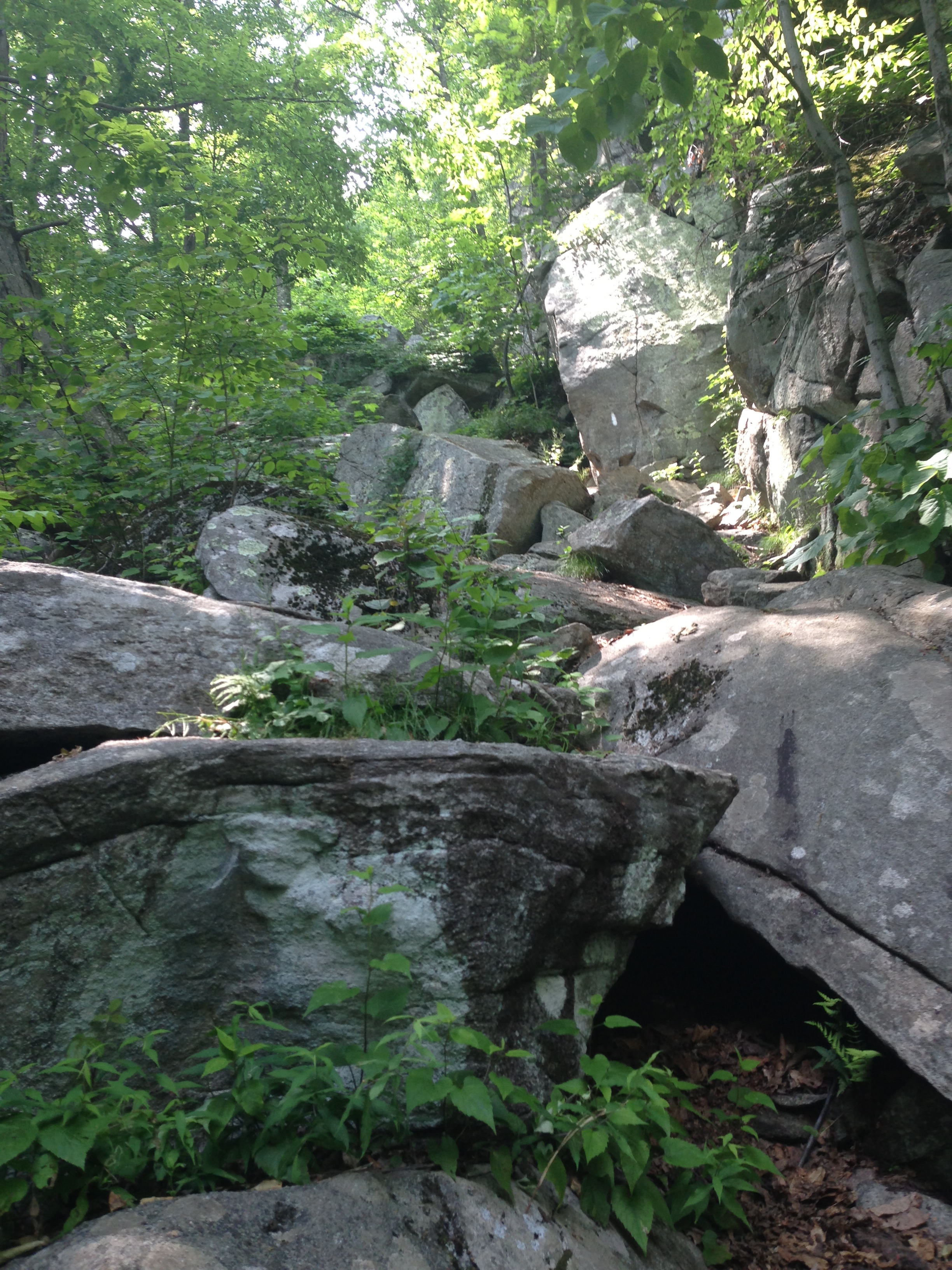It turned out the climb was up the Schaghticoke Mountain and we made it to a locally famous spot called Indian Rock. Now we knew it was just a short trip down the hill a bit to our campsite. The Schaghticoke Mountain Campsite was a charming little spot in the woods with a loud babbling brook running by, no serious mosquitoes, and no other campers. We had the place to ourselves.
