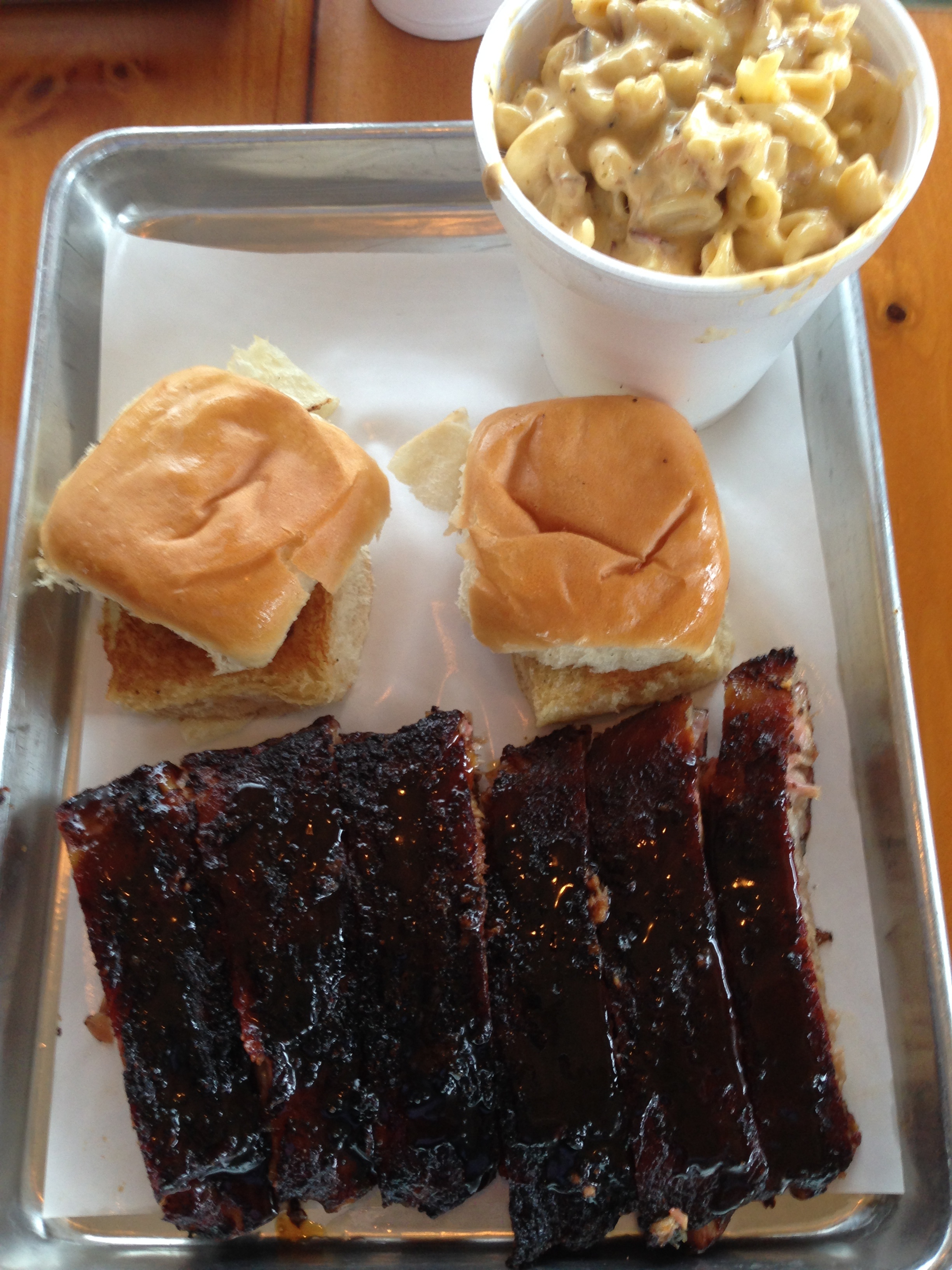 I recently made a work trip to San Antonio. My company has an office there but it is 15 miles north of downtown. I knew there would be precious little time on this trip to do any sightseeing but I managed to get downtown for one evening. While there I asked one of my coworkers in that office where we could get good barbecue at which point I witnessed the passion and expertise of a Texan and his BBQ. We didn’t have time, he said to go to the best barbecue because it was a good 30 minute drive. We would go instead to a place called the Smoke Shack. This place was my type of place. It was a modest and very casual BBQ joint with posters on the wall from famous blues artists. You order and pay at the register and they bring it to you. The place was packed at 11:30am on a weekday and many of the patrons were wearing suits and business attire. This was definitely the place to be!