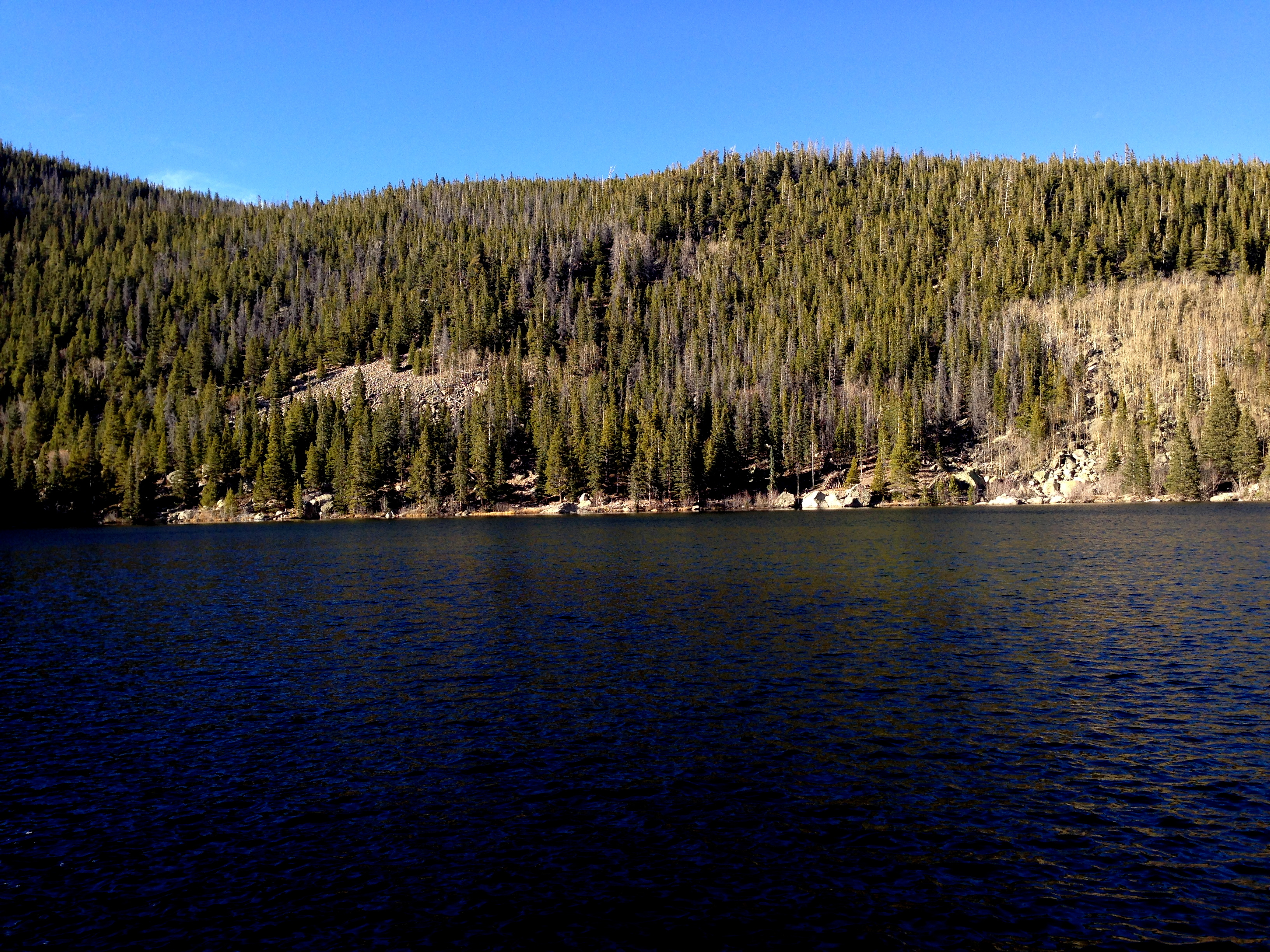As we continued we came upon Lily Lake. This gorgeous little tarn is surrounded by hiking trails and leads to some large mountains. It is just one of many beautiful spots along the route.