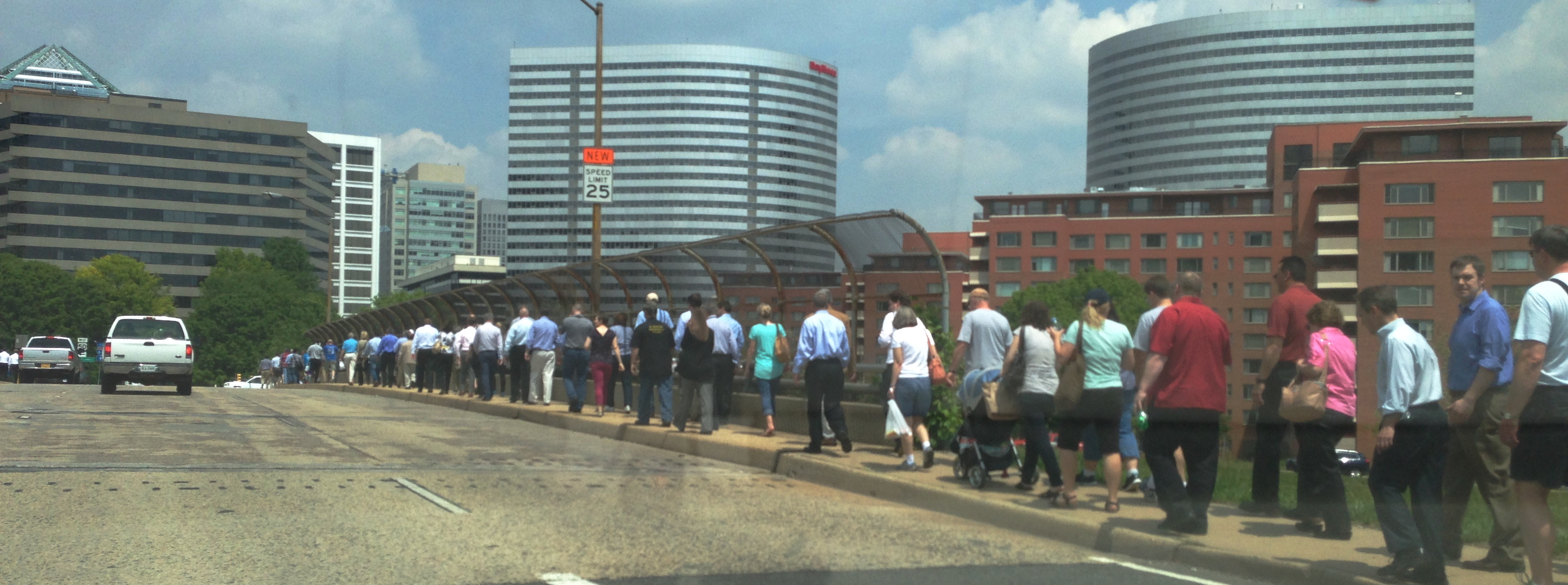 It sounded fun and I thought I would pop down to the Marine Memorial (Iwo Jima) and see it. Not an original idea! I knew I was in trouble when I saw throngs of people pouring from the offices in Rosslyn to the site!