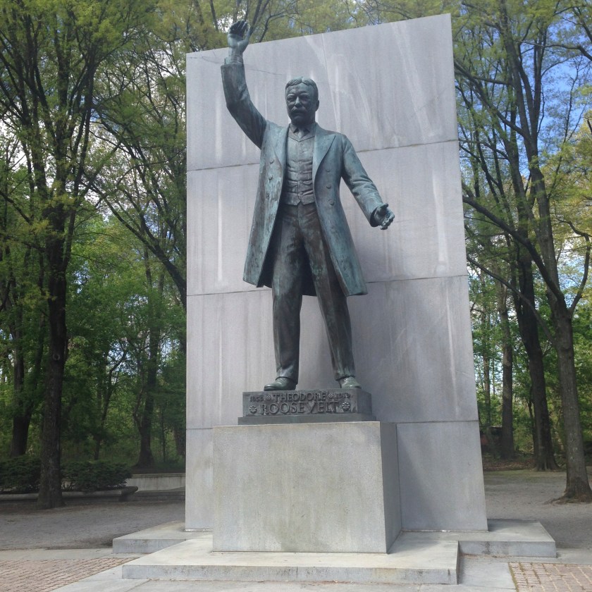 For this 3-mile walk I did a wide circuit around the perimeter of the island, and then wound in to the interior. In the center is a plaza and monument to Theodore Roosevelt, including a 15-foot statue of TR himself.