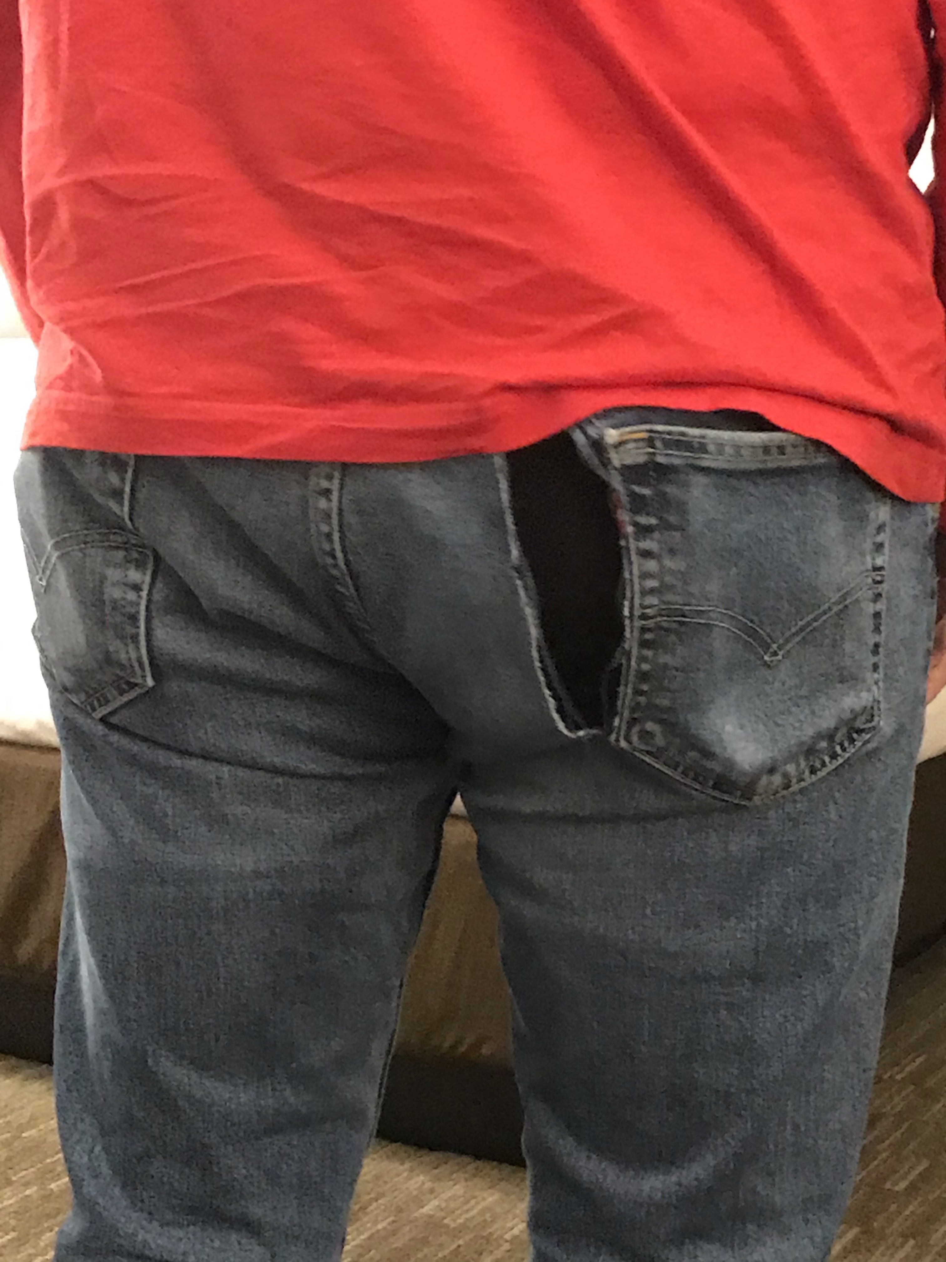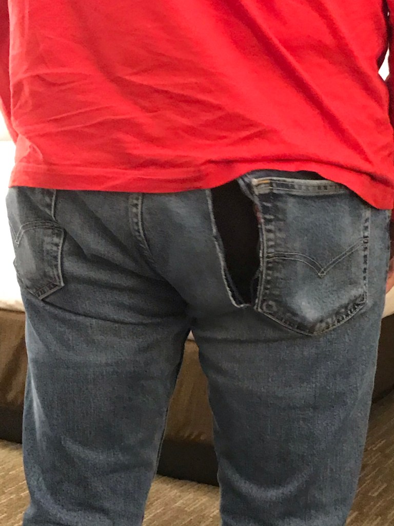 Anyone can fly across the country, but can you do it with a massive rent in the ass of your jeans?