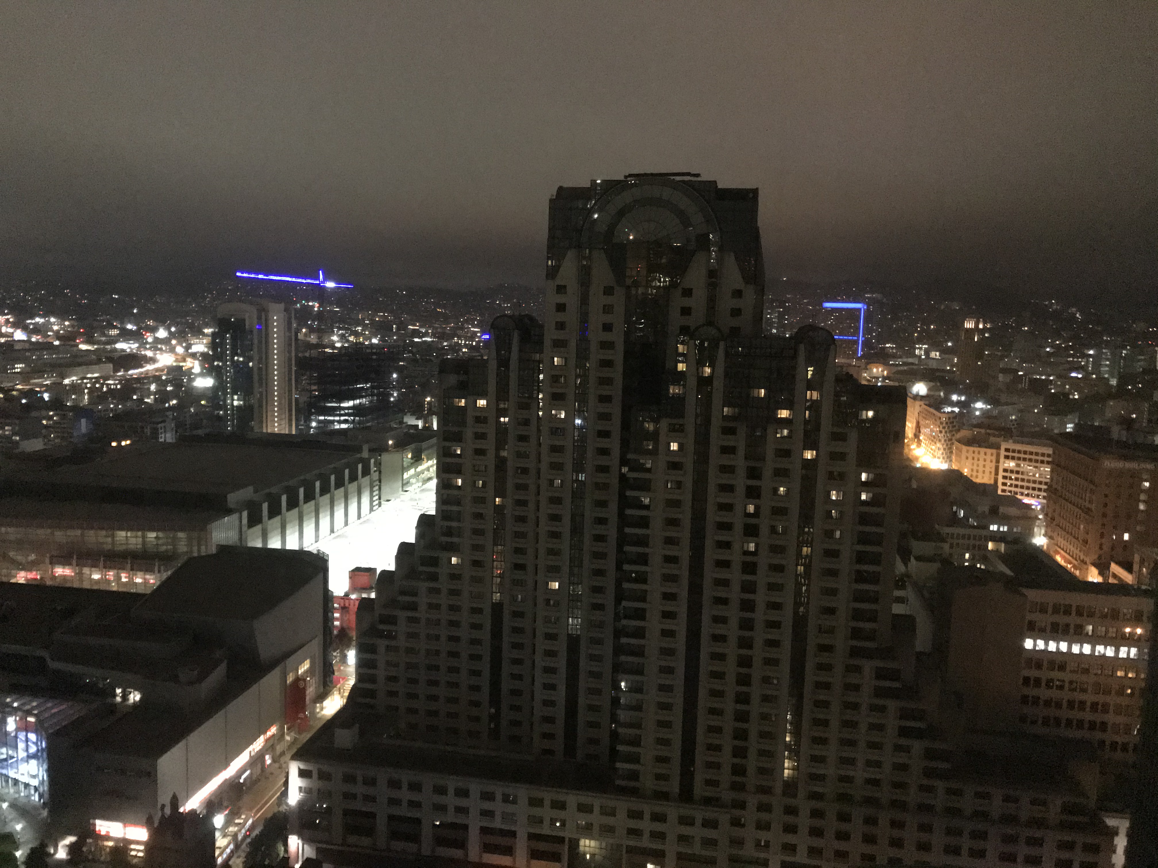 From the plane I watched the VP debate, and touched down in San Francisco at 9pm. Tim and his dog GusGus picked me up and we headed to the Park Central Hotel downtown. Tim and I went to college together and were roommates when we first moved to DC. We sat up talking until what for me was 3am. Tomorrow the trip begins!