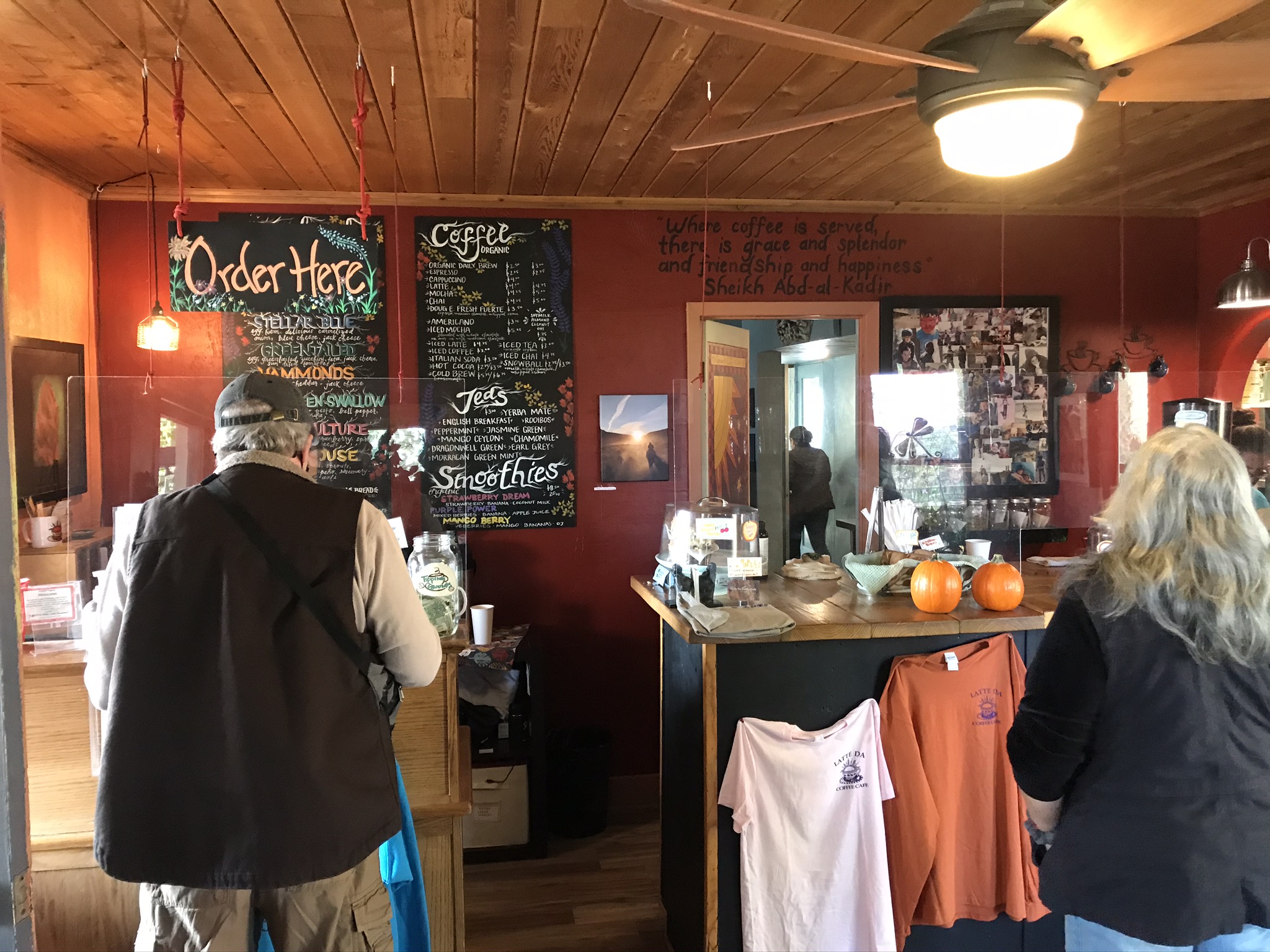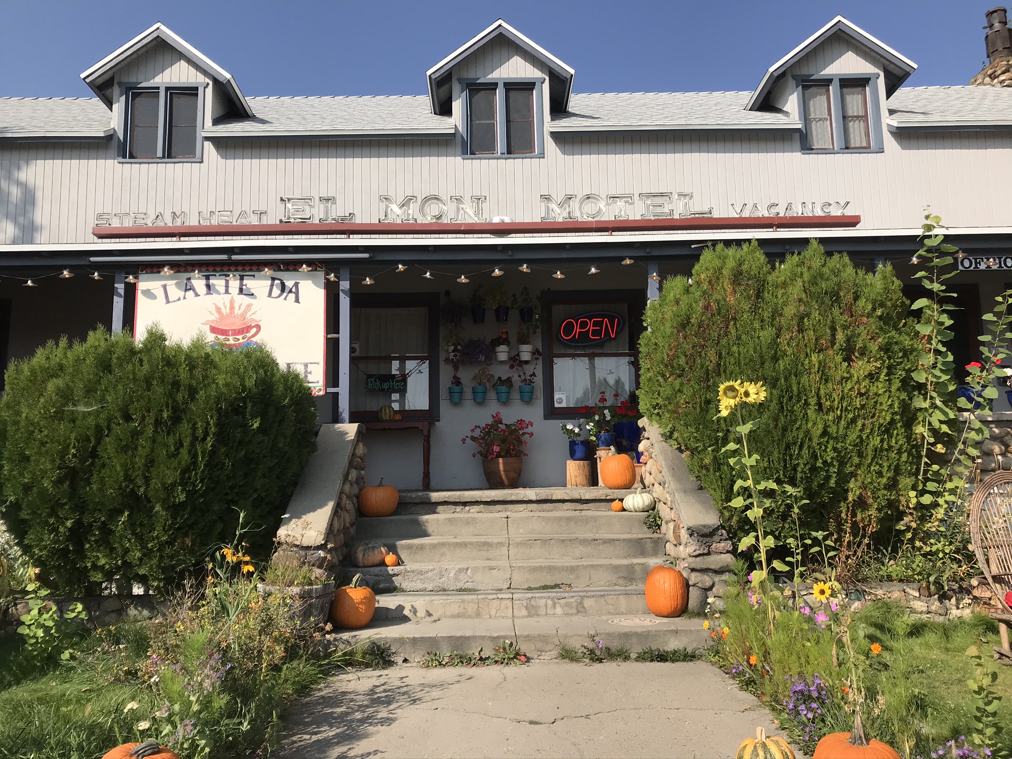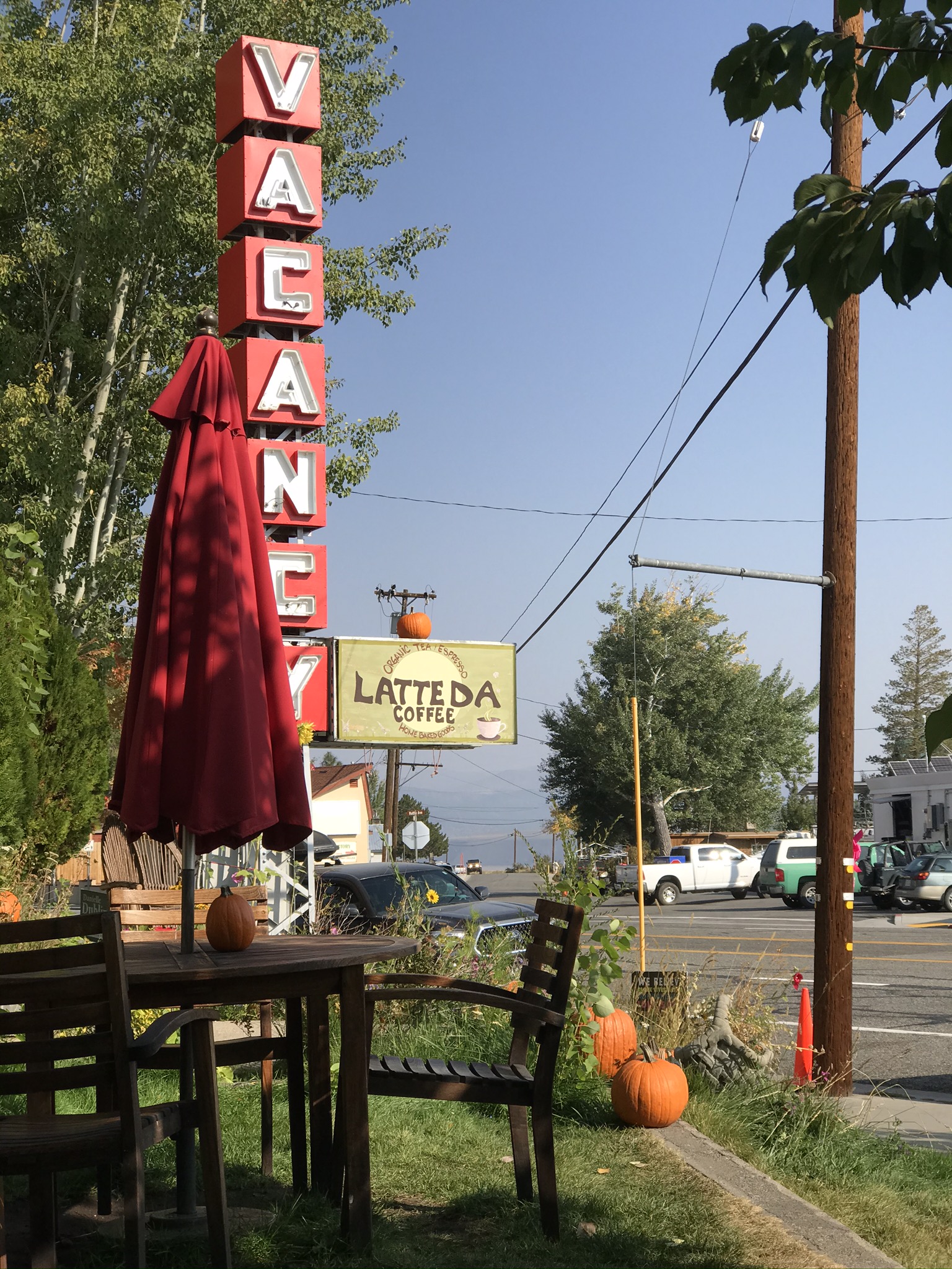 We stopped in Lee Vining, CA at the Latte Da Cafe. It was just one of those places that was comfortable, authentic, and popular. We grabbed a couple chairs, well-spaced and in the sun and enjoyed breakfast sandwiches on homemade focaccia. I got an Americano and a great sandwich.
