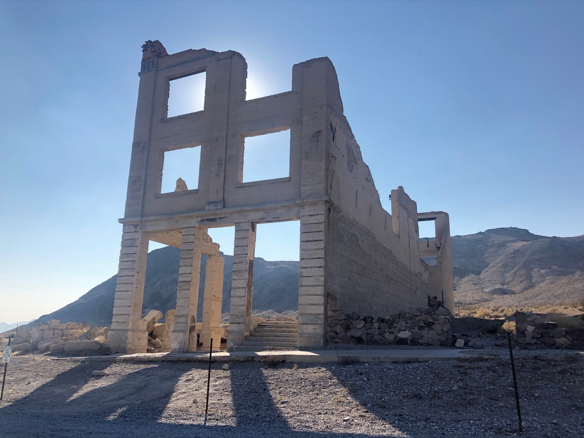 We spent over 2 hours crossing the park, photographing, and taking it in. At the end, we were in Nevada. Our first state border! We visited a ghost town called Rhyolite It was not the most exciting place to visit but it was also only 1 mile off the main road.