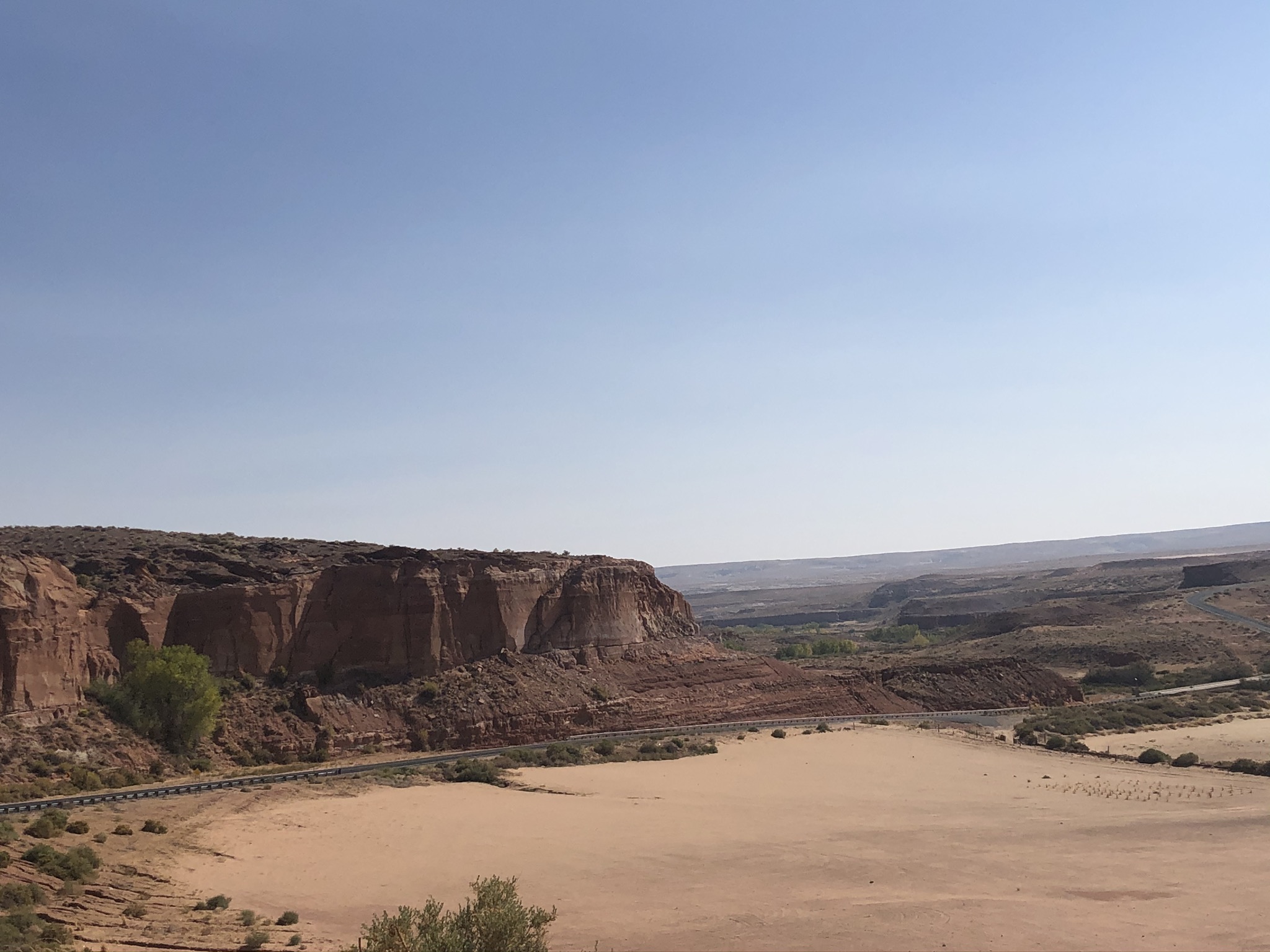 Today was mostly a driving day. We had hoped to visit the Four Corners Monument, the only place in the US where you can get on your hands and knees and be in 4 states at the same time! Unfortunately, this monument, along with a number of others in the region is closed. It sits on tribal lands and is run by the Navajo Nation. The COVID-19 pandemic has ravaged American tribes, compounded by vulnerabilities like poverty, isolation, and inadequate medical facilities. As a result, not only was the monument closed, but as we drove across Indian lands today we would discover everything was closed.