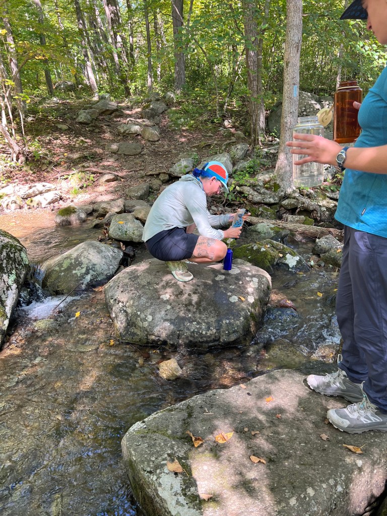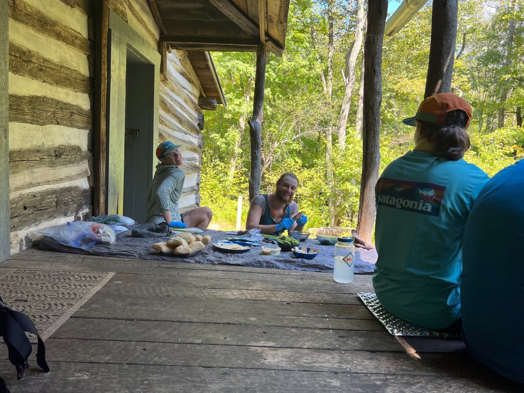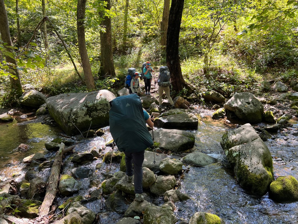 We set up camp near an Appalachian Trail shelter, Byrd’s Nest 3. Each found our special spot and then walked over a half mile down the mountain to a spring for water. There was so much laughing and excitement I would say that a good part of the fun was being with such a fun group!
