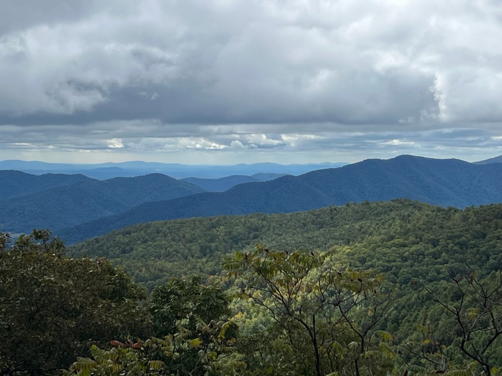 We had lunches from Panera and enjoyed our last flush toilet for a few days. We mounted up and were off on a trail called Mary’s Rock. If you drive south on Skyline Drive from Thornton Gap you go through a long tunnel. This is under the mountain we climbed.