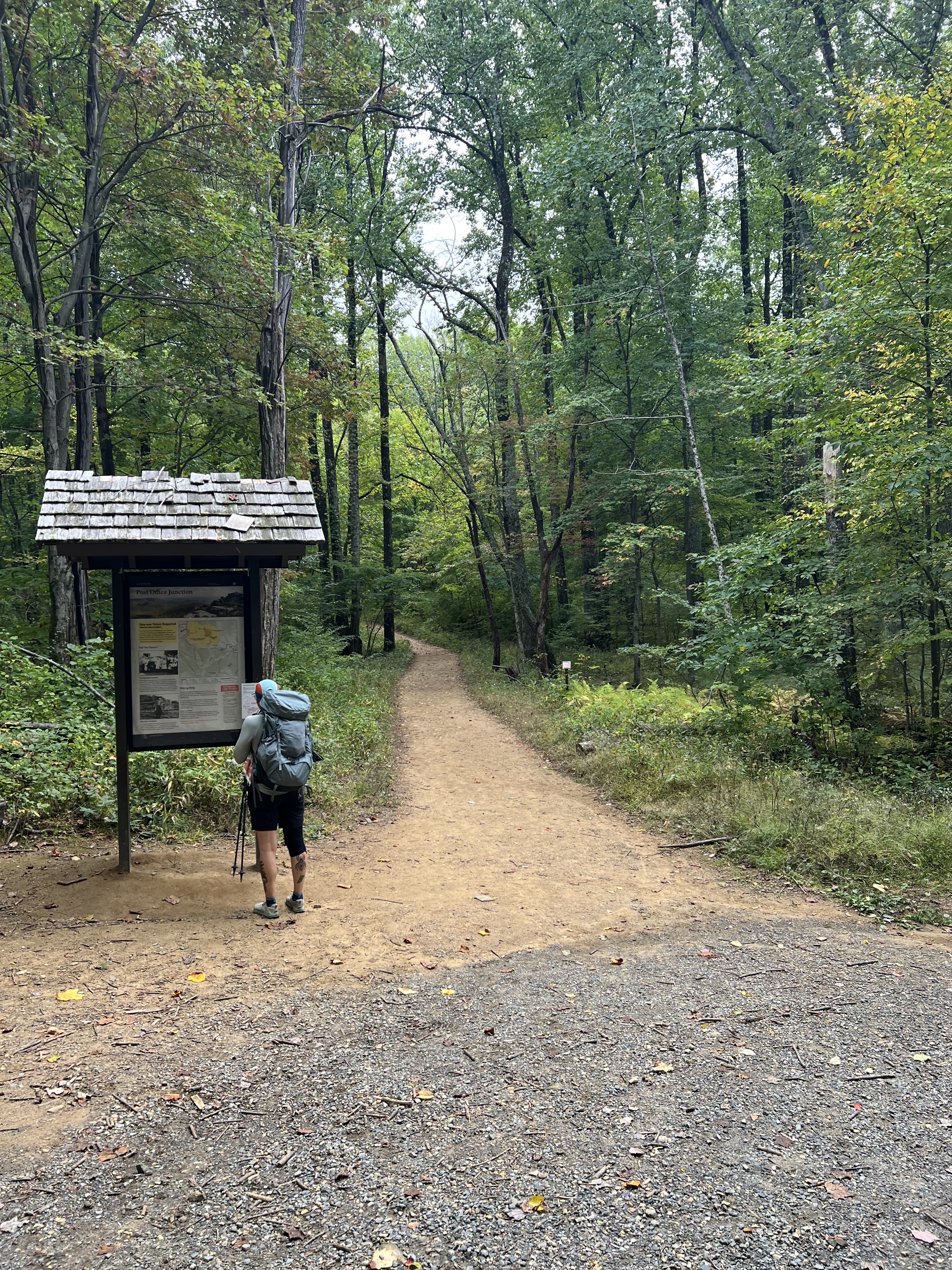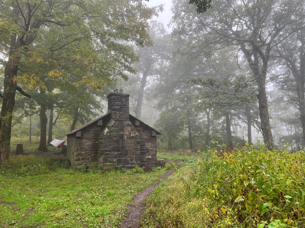 We loaded our packs into the type of trailer used by landscapers (there’s an inside joke here) and were off to Shenandoah National Park. We entered at the midsection of Skyline Drive, Thornton Gap. Right there as you enter the park is a picnic area called Panorama.