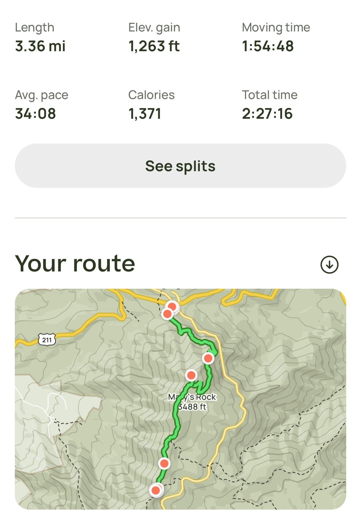 After coming down Old Rag, Mariah and I took the Old Rag Fire Road back to camp. It was still a long steep climb, but easier going than the trail we had taken in the morning. It was a couple hours before the rest of the group returned and when I could hear voices in the distance I ran down the trail to greet them. In just a few days I had come to miss them! We spent dinner and the evening recounting our day.