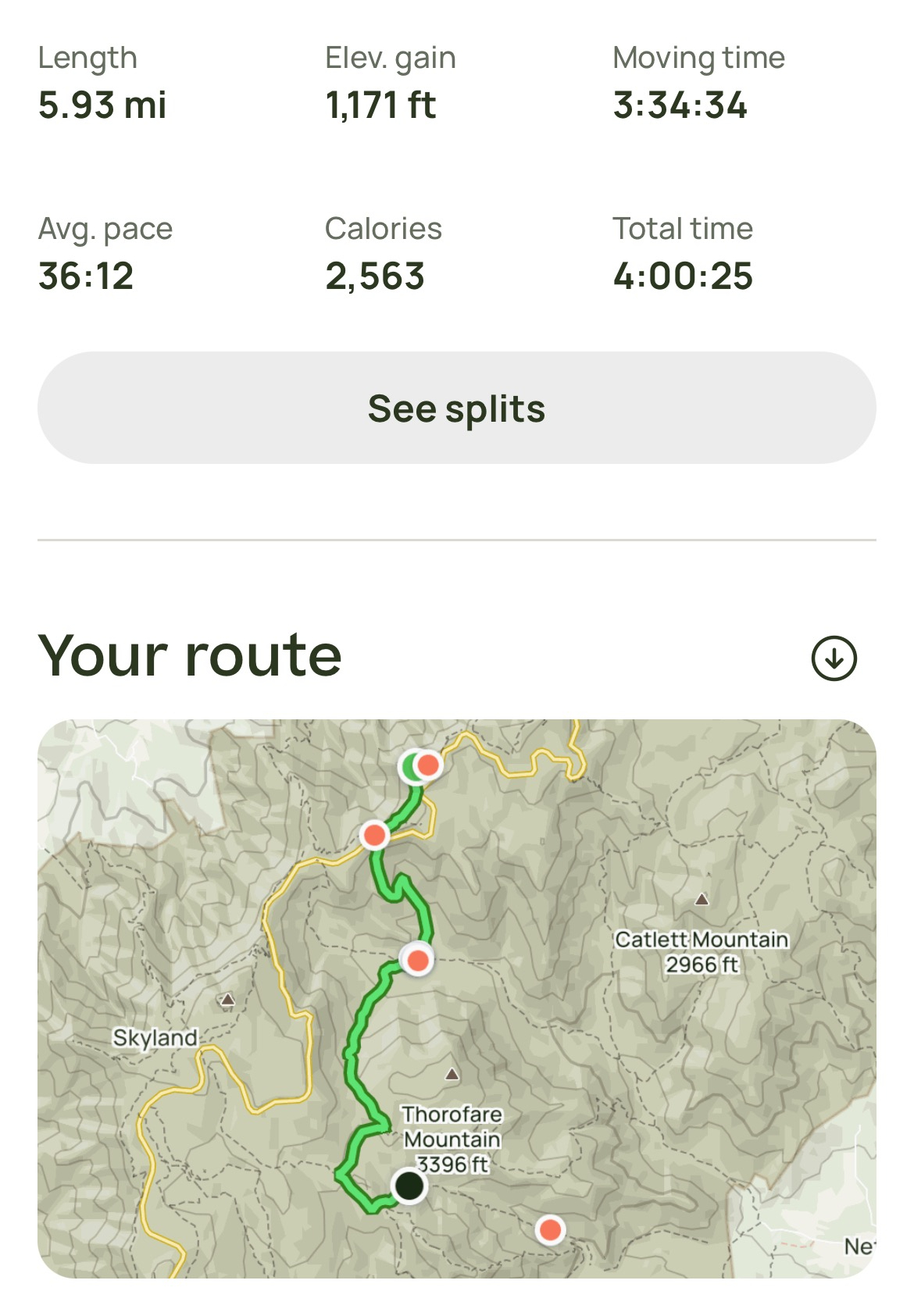 Day 4 was pretty easy hiking. It was literally all downhill from here! Sometime during the trip, an REI employee had moved our van to the Old Rag parking lot and we had a pretty direct descent to there, half of which was just fire road. Good thing too. We were all tired by then and in need of a cold beer, a shower, and. a soft bed!