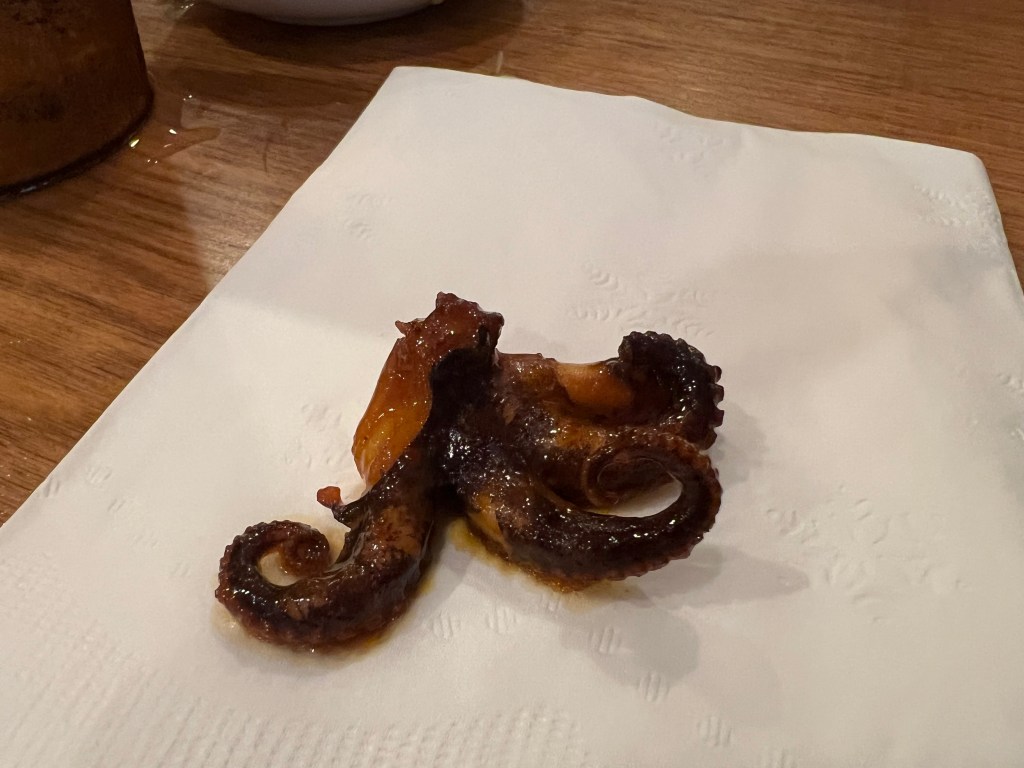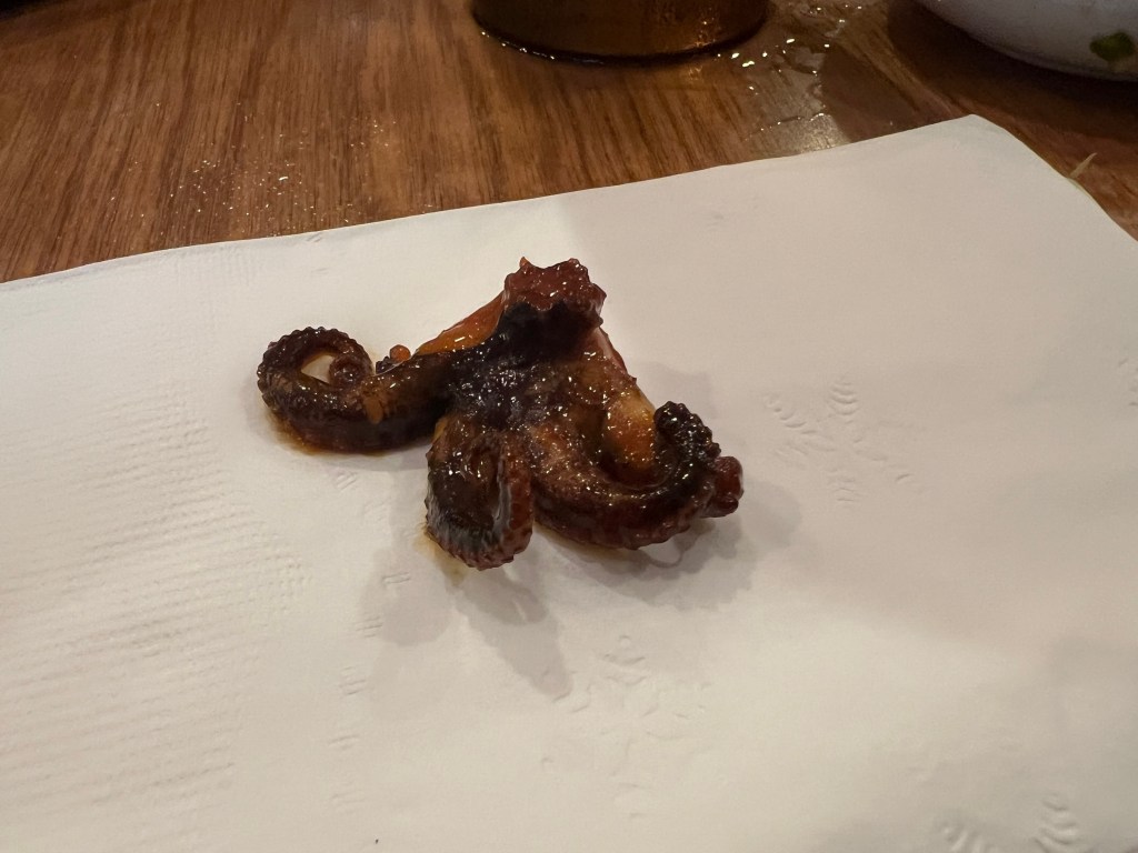 The next time we went (this time with mics turned on) we tried a stir-fried noodle dish with baby octopus. I recognize not everyone will want to eat a baby octopus. it’s way more personal than a simple ring of calamari, this actually looks like a, well, baby octopus. The noodles it is served with would be fantastic with or without the octopus. They are handmade, and thick enough to be a bit chewy! They also hold the great sauce well. We really enjoyed the entire dish.