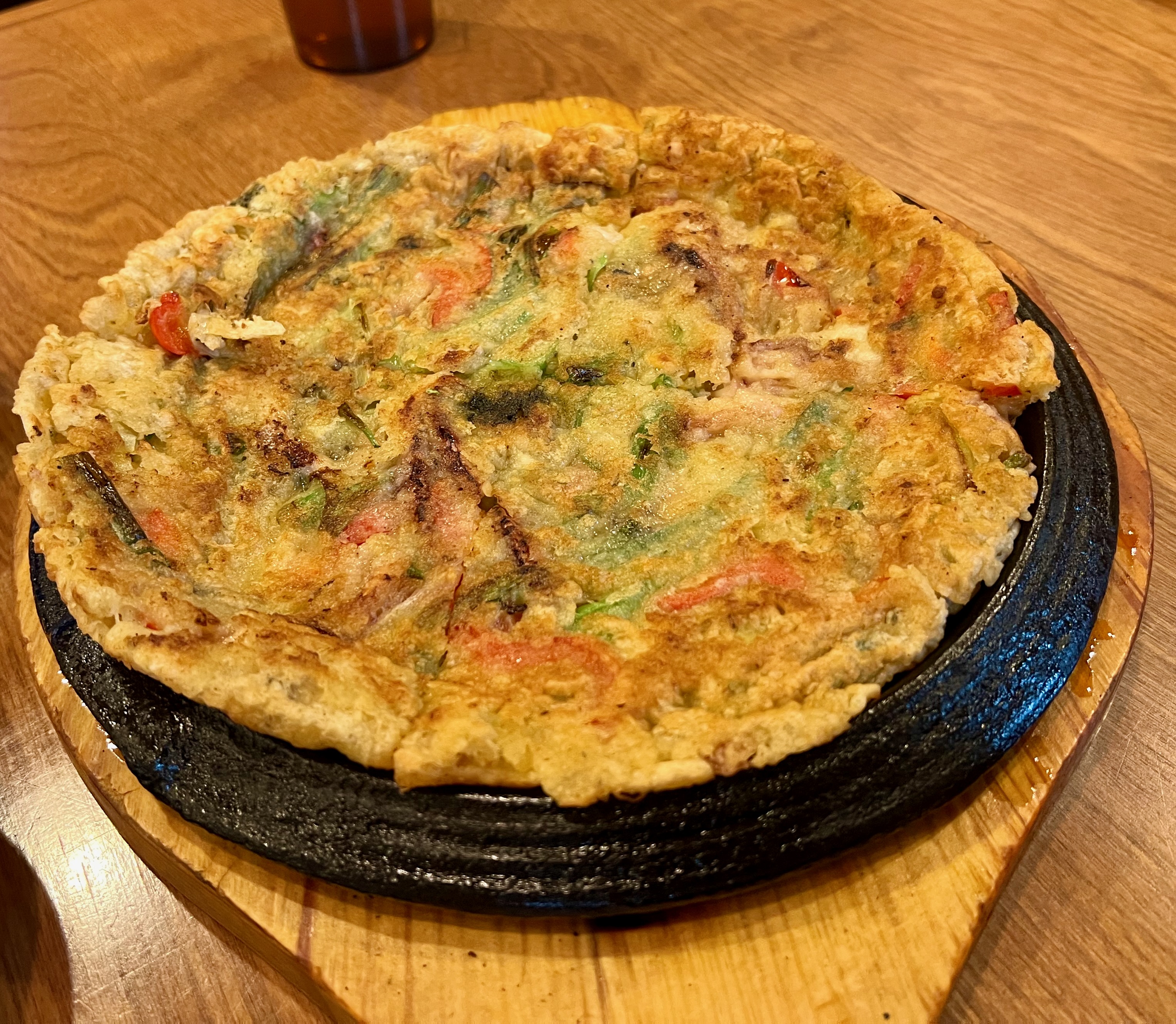 The seafood pancake, haemul-pajeon at Lighthouse is also among the very best. We have 5 criteria on which we grade the seafood pancake. They are, thickness, crispiness, amount of seafood, flavor, and the inclusion of a dipping sauce. The seafood pancake at Lighthouse Tofu scores highly all counts!