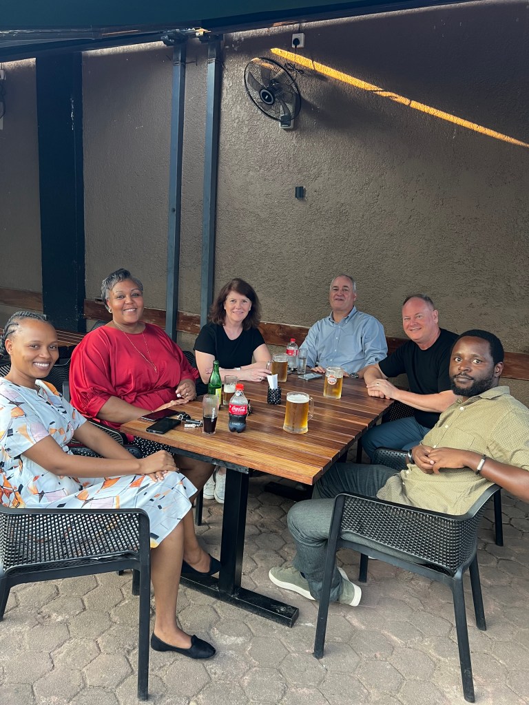 On day 1, Jim suggested a lunch spot called the Hut. It is the roof deck restaurant of a boutique hotel. Both the view and the food were great! I just couldn’t believe I was sitting in Kigali! The beer most often served is called Mützig, a Heineken brand made in Rwanda.