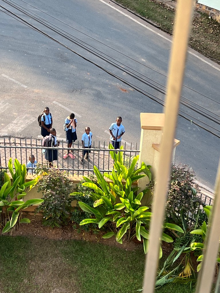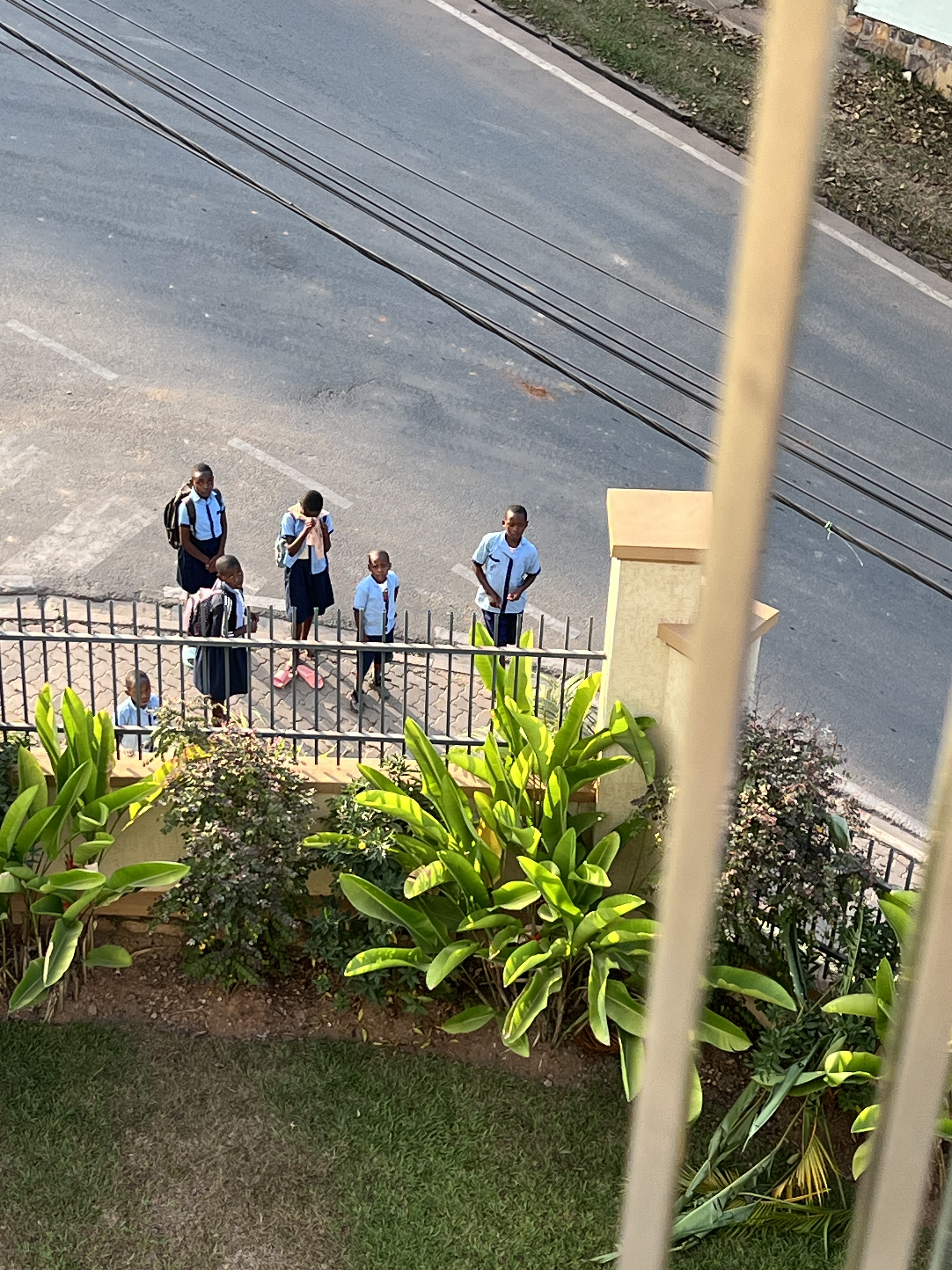 Right below his balcony was a morning procession. There were kids going to school and women going to work. There were runners on a beautiful running track around the perimeter of the golf course.