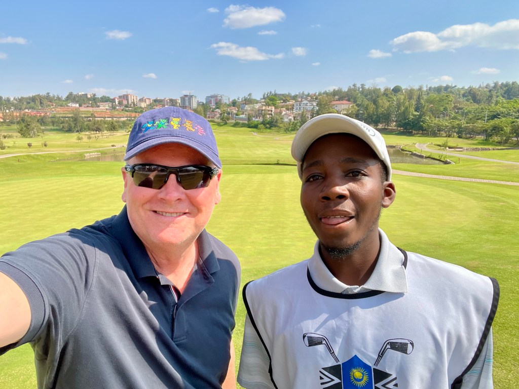 Jim’s place is a high-rise apartment building on a hill. The view is fantastic and there is an entire world to see over morning coffee! Kigali has a beautiful golf course right in the center of town and this was visible from Jim’s place. One afternoon I walked over and played 18 holes with a caddy. I could hardly believe I was golfing in Africa!