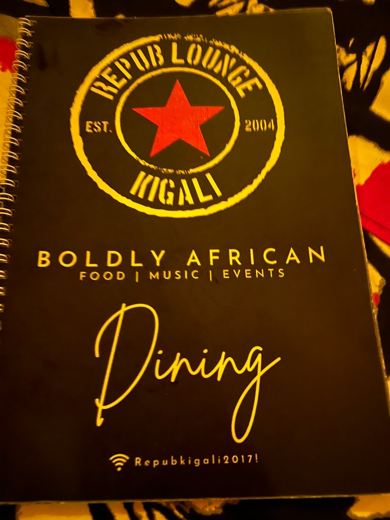 We ate at several good restaurants. The food features a base of beans and rice. It comes topped with starchy vegetables and meat. My favorite was a small lunch buffet called Murugo. Like any international city, Kigali has its share of food from other countries, including the French “Poivre Noir”. They were all good, but when in Kigali… I preferred–and recommend–the afro-centric Repub Lounge which was delicious, upscale, and very creative.